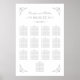 Design poster de assento de casamento apresenta rolagens coloridas de prata / cinza e floresce moldando monograma personalizado e nomes de hóspedes por número de tabela. Treze (13) mesas. A cor branca de fundo pode ser personalizada.