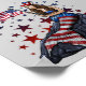 Sereia Patriótica Americana vestida em estrelas e listras e segurando a bandeira dos EUA.