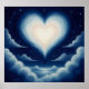 This whimsical poster features a glowing heart-shaped light that radiates through a dreamy night sky filled with soft, swirling clouds and twinkling stars, symbolizing love and serenity. Finished as an oil paint art print.