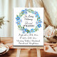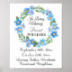 Um elegante memorial fúnebre celebração da vida sinal com verde watercolor e flores azuis Não Me Esqueça.