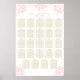 O gráfico de assentos de peônias Elegante poster apresenta um monograma dos nomes de noivas e noivos e data de casamento, texto de modelo personalizado para vinte e quatro (24) números de tabelas e nomes de convidados, bem como pessoas com um aspecto desenhado/desenhado à mão. As cores incluem peões florais cor-de-rosa, fundo de marfim e texto dourado.