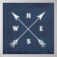 Ilustração de compasso com setas e decoração norte, leste, sul e oeste sobre fundo azul-verde
