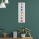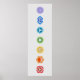 Símbolos chakra coloridos do arco-íris adornam esta poster legal. O design gráfico inclui ícones para as sete maiores rodas de energia: Muladhara (raiz chakra), Swadhisthana (sacral chakra), Manipura (solar plexus chakra), Anahata (coração chakra), Vishuddha (garganta chakra), Ajna (terceiro olho chakra), Sahasrara (coroa chakra). Sinta-se livre para mudar a cor de fundo deste poster para se adequar ao seu estilo pessoal ou decoração doméstica.