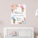 Um conselho de boas-vindas para um elegante e moderno partido revelador de gênero. Um fundo branco, grama pampas estilo bico, florais azuis cor-de-rosa e claro, e um rapaz de ursos peludos e uma menina segurando balões azuis e cor-de-rosa. Personalizar e adicionar os nomes