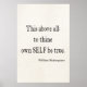 Poster Shakespeare Citação Do Seu Próprio Ser Verdadeiro