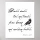 "Dupla bobina e queimadura e bolha de caldeirão." A tipografia de William Shakespeare em Macbeth citou letras negras e brancas com ilustração de corvo. Impressão de pintura de parede imprimível, perfeito para decoração de Halloween ou presente de inauguração.