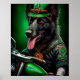 Um amigo peludo atrás das guiadas de uma bicicleta verde brilhante, vestindo uma roupa verde para o Dia de São Patrick que faz as cabeças virarem. O cachorro está vestido num conjunto festivo, completo com uma gravata verde de arco e um chapéu de topo correspondente que se senta suavemente sobre a cabeça. A roupa apresenta designs intrincadas de shamrocks e duendes, fazer claro que este cão está pronto para celebrar o Dia de São Patrício no estilo.