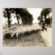 Fotografia vintage de 1921, que representa um pastor francês e o seu bando de ovelhas.