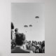 Este brilhante impressão preto e branco apresenta paraquedistas ousados deslumbrando seu público em um show aéreo europeu de 1968. Faz um presente maravilhoso para o paraquedista, o buff militar, ou para o amante da fotografia vintage na sua vida.