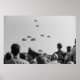 Este brilhante impressão preto e branco apresenta paraquedistas ousados deslumbrando seu público em um show aéreo europeu de 1968. Faz um presente maravilhoso para o paraquedista, o buff militar, ou para o amante da fotografia vintage na sua vida.