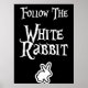 Siga o coelho branco. Alice no livro de Wonderland dizendo. Uma citação engraçada com design tipográfico. Arte tipográfica com citações de livros. Versão preta.