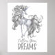 Poster Siga Seus Sonhos - Unicórnio Prata e Branco