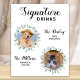 Signature Drinks de seus animais de estimação! Inclua seu melhor cachorro, melhor gato e qualquer animal de estimação no seu casamento com seu próprio bar de bebida para seus hóspedes. Perfeito para amantes de cães, e um bar especial de cães será um sucesso no seu casamento. Branca simples, mas elegante, com folhas de eucalipto. Personalize esta placa de casamento de estimação com suas fotos favoritas de cachorro, gato, cachorro ou gatinho, nomes e bebidas de assinatura!. COPYRIGHT © 2020 Judy Burrows, Black Dog Art - Todos Os Direitos Reservados. Signature Bebe Pet Wedding Poster