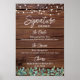 Bebidas de Assinatura! O eucalipto moderno, mas rústico, e as lanternas de cordas na madeira rústica do país com caligrafia elegante, esta placa de bar de bebida assinada apresenta dois coquetéis "A Noiva" e "O Cavalo", personalizados com suas bebidas preferidas. Personalize este símbolo de casamento elegante com seus nomes e bebidas de assinatura! COPYRIGHT © 2020 Judy Burrows, Black Dog Art - Todos Os Direitos Reservados. Signature Drinks String Lights Bar de Poster de Casamento Personalizado