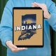 Na moda poster impressão apresenta uma silhueta de estado cênico retrô de Indiana sobre fundo marrom-claro.