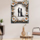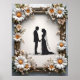 Silhueta elegante de um casal de casamento de mãos dadas, emoldurada com uma borda decorativa adornada com belas margaridas. Perfeito para temas de amor, casamentos e comemorações românticas.