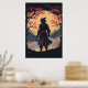 Poster Silhouette Samurai Warrior Moon
