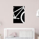 Este poster de estilo contemporâneo apresenta uma silhueta frontal de bicicleta branca sobredimensionada sobre um fundo preto criando um aspecto geométrico, moderno. A cor de fundo pode ser facilmente alterada clicando em "Editar Design". Este impressão é mostrado em um quadro branco (não incluído).