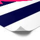 Uma silhueta rosa clara e néon de uma âncora está sobre um fundo azul e branco listrado marinho. Uma design náutica divertida.