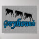 Saltando poster de silhuetas de galgos. Design por Susan. Para mais posters e impressões florais, animais e naturais, por favor visite minha galeria de poster Smilin' Eyes Posters. Esta imagem está disponível em muitas cartas e produtos na minha loja principal "Smilin' Eyes Treasures". Visite a página Perfil para encontrar links para todas as minhas lojas.