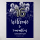 Poster Silver Foil Sweet 16 Balões Azul Sinal de Boas-vin