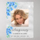 Personalize e adicione uma foto, um nome e datas. Um fundo metálico cinzento e reluzente, decorado com flores azuis que me esquecem e não.