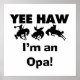 Yee Haw Eu sou uma camiseta Opa, canecas, cartões, adesivos, botões de anúncio, keepsakes opa, e outros presentes opa com um cavalo de entrelaçamento e design de texto preto ou branco. Estes itens de roupa de opa e presentes são perfeitos para avós pela primeira vez ou opas temperadas de uma nova chegada!