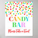 Poster de bar de doce para chá de fraldas, chá de panela, festa de aniversário ou casamento com o padrão de confete arco-íris.