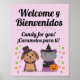 Celebre o Dia das Bruxas com este símbolo bilíngue Espanhol-Inglês. A design apresenta um cão e rato bonitinho do Halloween e o texto "Bem-vindos por Bienvenidos", por cima, e as palavras "doces para ti" e "Caramelos para ti." Perfeito para uma sala de aula bilíngue, ou para uma decoração divertida para uma festa ou para truques ou tratadores! Un póster lindo para celebrar Halloween, decorado con un perro y una gata.