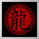 Celebrar o Ano do Dragão com este design de captura de olhos que apresenta um símbolo chinês preto (ou kanji japonês) para dragão rodeado por uma armação redonda estilo oriental do ornamentado sobre um fundo vermelho e preto. sgb01