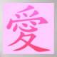 O símbolo chinês do amor num brilhante, brilhante gradiente rosa.
