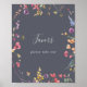 Este clássico sinal azul de favores florais selvagens é perfeito para um casamento ou chá de panela moderno. A design apresenta flores silvestres brancas, amarelas, roxas e brancas com folhagem em fundo de rosa e aquarela verde.