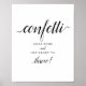 Esta elegante placa de caligrafia negra "Confetti!" é perfeita para um simples casamento ou chá de panela. Este sinal pode ser usado para um casamento ou qualquer evento ou festa.