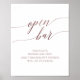 Este elegante sinal de bar aberto de caligrafia rosa dourada é perfeito para um casamento simples. A design cor-de-rosa-pincelada apresenta uma poster minimalista decorada com tipografia de folha de ouro rosa-falso romântica e caprichosa. Nota: Este design não apresenta folha de ouro rosa real. É um gráfico de alta qualidade feito para se parecer com folha de ouro rosa.