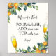 Sinal de Bar Mimosa com ilustração de adoráveis frutas de verde e citros com as palavras bar Mimosa em uma engraçada escrita caligráfica. Ou edite o título para dizer Bar Momosa para um Chá de fraldas.