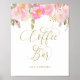 Sinal de Bar de café Elegante com design floral cor-de-rosa e ouro e bela caligrafia. Esta design feminina de aquarela tem flores cor-de-rosa e douradas com um traço de verde. Apresenta elegantes letras de mão e tipografia em ouro, com "Bar de café" gravado à mão em caligrafia suave. Por favor, procure na minha loja itens correspondentes.