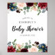 Um maravilhoso design floral moderno com adorável texto azul e flores azuis marinhos pintadas e burgundy. O texto e as cores neste sinal de boas-vindas do chá de fraldas podem ser editados.