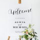 Simples símbolo de boas-vindas clássico, preto e branco, moderno e minimalista, com modelo de poster imprimível, com um guião de caligrafia manuscrito. +++++++++++++++++++ Ideal para a elegante celebração ou aniversário de casamento do barato de orçamento clássico.