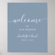 Bem-vindos aos seus convidados à sua elegante festa de casamento azul empoeirada com este moderno sinal de boas-vindas ao casamento. Personalizar facilmente online. Itens correspondentes disponíveis para complementar este sinal de boas-vindas.