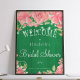 Poster com chá de panela de placa de chic e clássico, com peônias rosas pinceladas rusticadas e luzes cintilantes brilhando sobre o fundo verde-férn. Ideal para o seu verão primavera | jardim |outono | chás de panela temáticos rusticais do país.