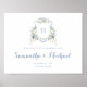 Símbolo de Boas-vindas do Monograma de Hydrangea Azul Floral. Sinal de Boas-vindas do Casamento Azul Dusty. Flores de Hydrangea Brancas Greenery Watercolor Poster
