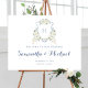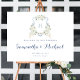 Sinal de Boas-vindas de Boas-vindas ao Pato Azul Dusty Elegante Floral. Sinal de Boas-vindas do Casamento Azul Dusty. Flores Brancas Poster de Casamento por Aquarela Verde