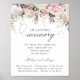 Um sinal de memorial de casamento que pode ser baixado ou encomendado no papel. Sinal modelo russo e elegante. Ele apresenta uma borda esmagadora ao longo da parte superior que contém rosas rosa pinceladas e flores brancas de hydrangea. Isso é perfeito para um casamento de verão. As rosas cor-de-rosa suaves acrescentam um toque romântico e as flores brancas de hydrangea dão-lhe uma vibração botânica moderna, aberta e arejada. Muitas folhas e perigos verdes dão-lhe uma nova aparência. No Loving Memory está escrito em uma letra de moda e moda que é muito popular. Há uma declaração memorial refletida e depois o falecido pode ser listado. Esta é parte do pacote de sinais de casamento da Summer Romance que tem muitos componentes.