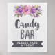Poster de sinal de bar de doce para chá de fraldas, chá de panela ou casamento no país rústico com padrão floral de cor d'água primavera em tons de roxo e lavanda com texto de estilo escrito à mão. Perfeito para um chá de fraldas, casamento, aniversário ou chá de panela.