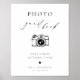 Bem-vindos aos seus convidados ao livro de convidados de fotos minimalista de casamento com um sinal que exude elegância, apresentando um design preto e branco elegante e uma câmera fotográfica pintada à mão. Esse sinal personalizável facilita o ajuste de texto e cores para refletir seu estilo exclusivo sem esforço. Este versátil cartaz do livro de hóspedes adiciona um toque de sofisticação à sua decoração moderna do casamento.