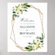 Um design floral com uma estrutura geométrica moderna e flores brancas de marfim. O texto e as cores neste poster de sinal podem ser editados.