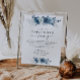 Um design adorável com flores azuis pintadas de cor d'água O texto e as cores deste cartaz de casamento poster podem ser editados.
