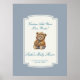 Poster Símbolo de Chá de fraldas Azul com Urso Cinzento C