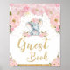 Sinal de Livro de Convidado do Elefante Floral Blush, Cor-de-Rosa, Whimsical. Perfeito para muitas ocasiões diferentes, incluindo festas de aniversário e chás de fraldas. Itens correspondentes disponíveis no armazenamento em Chá de fraldas - Elefante Floral Blush. c) O Feliz Cat Studio