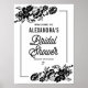 Um sinal de boas-vindas de chá de panela personalizável, com flores pretas e tipografia moderna. Esta é uma parte de uma coleção de casamentos, itens correspondentes e outras cores disponíveis.